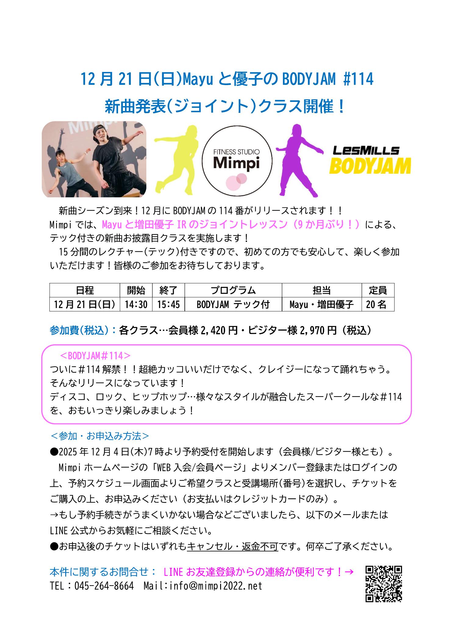 12/21(日)Mayuと増田IRによるBODYJAM新曲クラスのご案内!