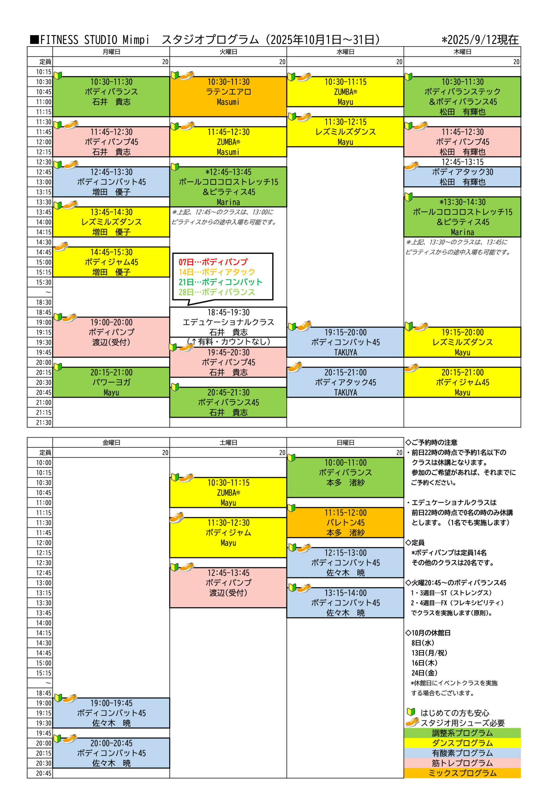 2025年10月スケジュールのご案内